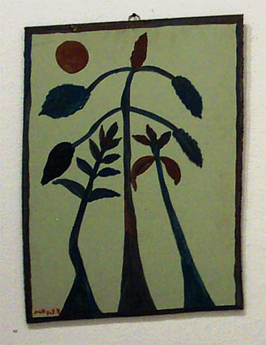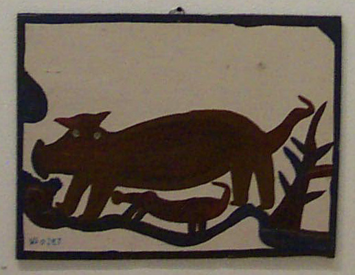 enamel and house paint on pine-board